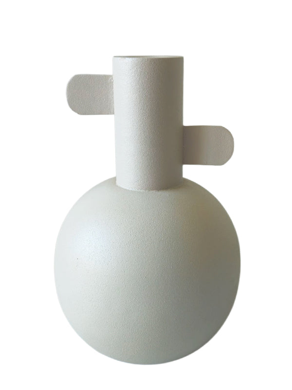 Este candelabro combina robustez y elegancia. Su base redondeada crea un aspecto suave y acogedor, mientras que los detalles simétricos le aportan un toque gráfico y moderno. Su acabado mate y su tono neutro lo convierten en la pieza perfecta para ambientes tranquilos y minimalistas.